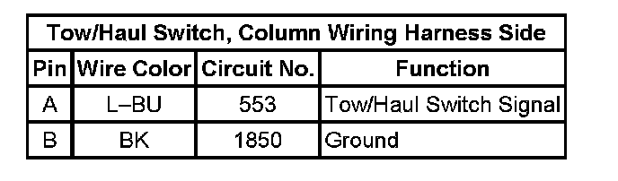 Tow/Haul Switch, Column Wiring Harness Side: