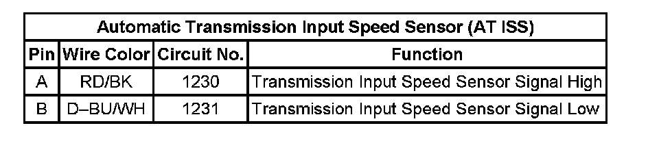 Automatic Transmission Input Speed Sensor (AT ISS):