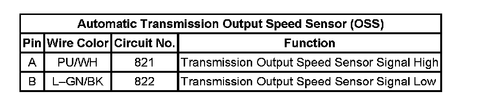 Automatic Transmission Output Speed Sensor (OSS)