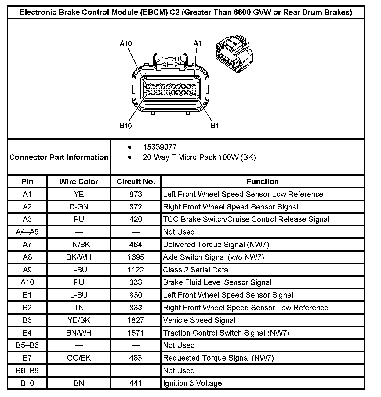 Electronic Brake Control Module (EBCM) C2 (Greater Than 8600 GVW or Rear Drum Brakes)