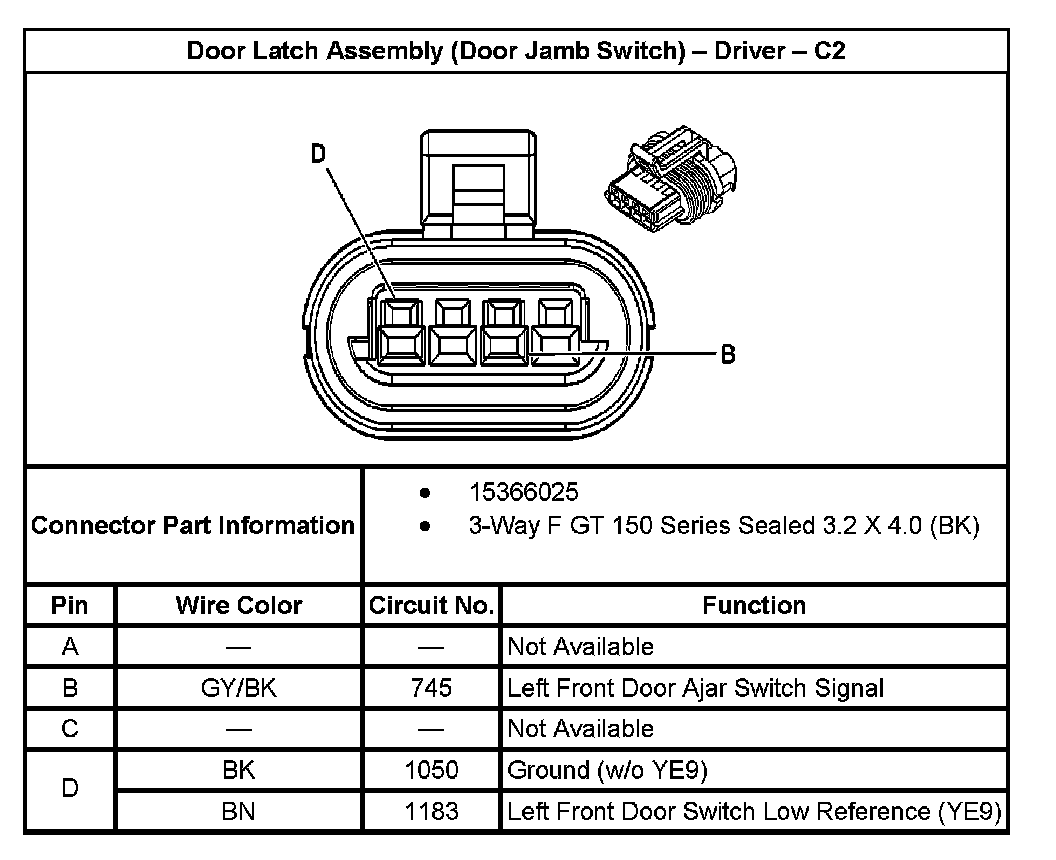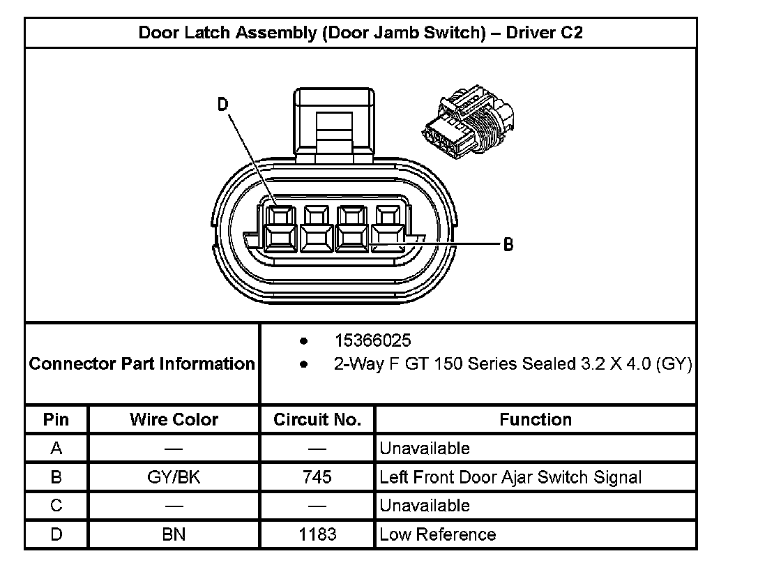 Door Latch Assembly (Door Jamb Switch) - Driver C2: