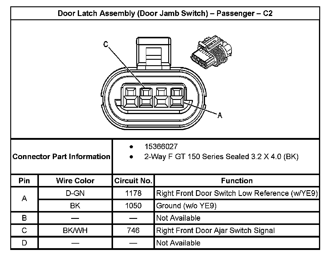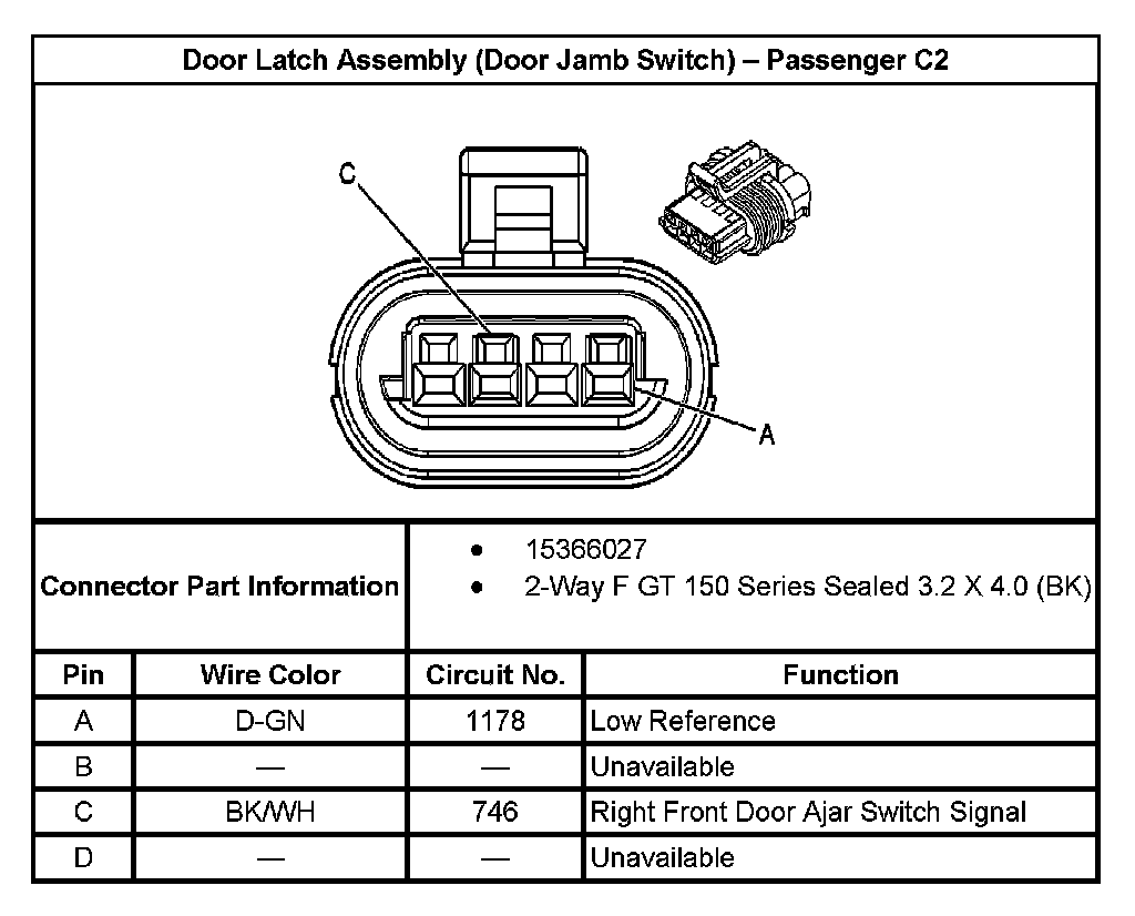 Door Latch Assembly (Door Jamb Switch) - Passenger C2: