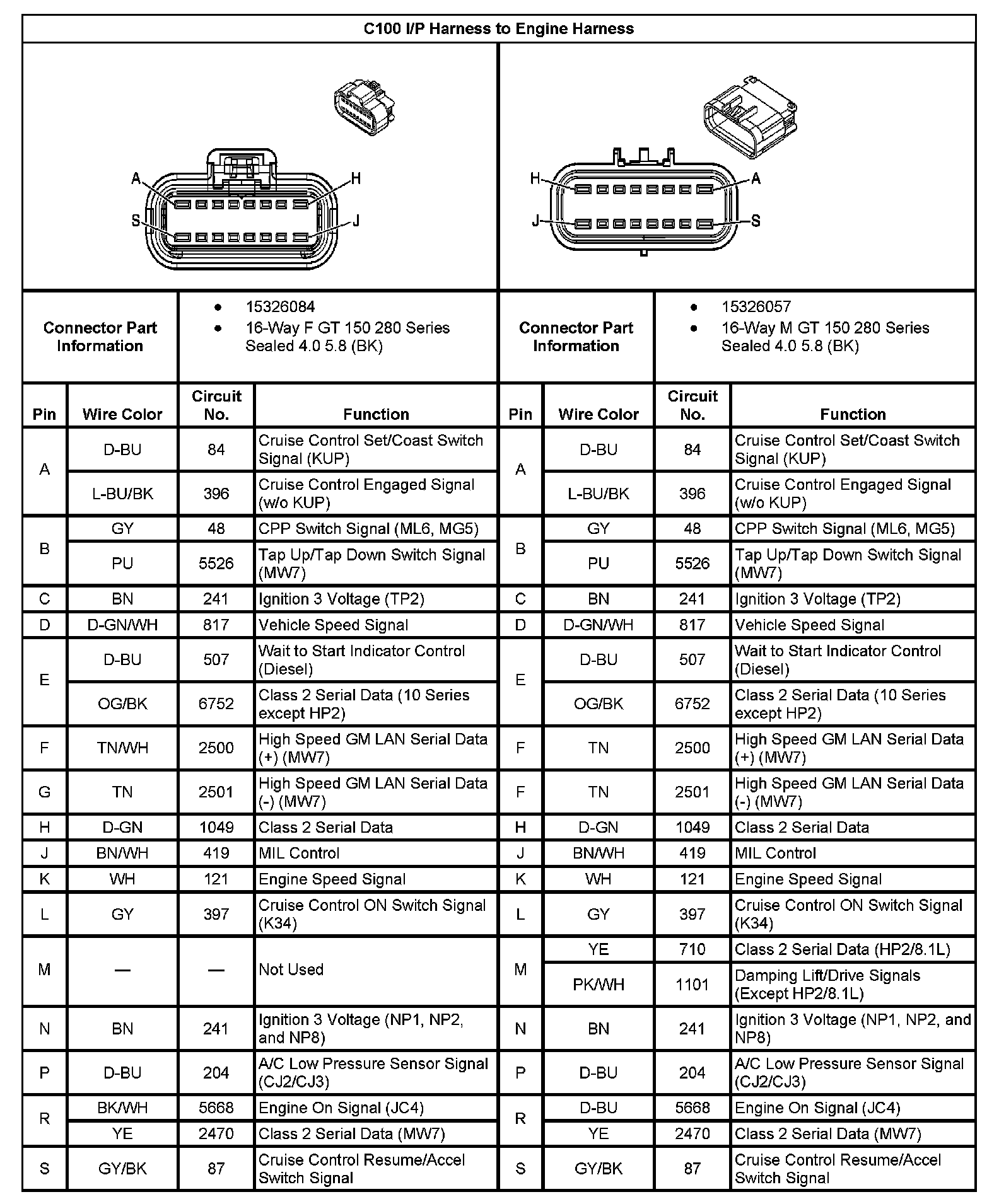 C100 I/P Harness To Engine Harness: