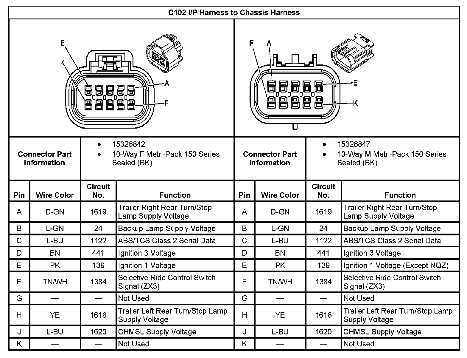 C102 I/P Harness To Chassis Harness: