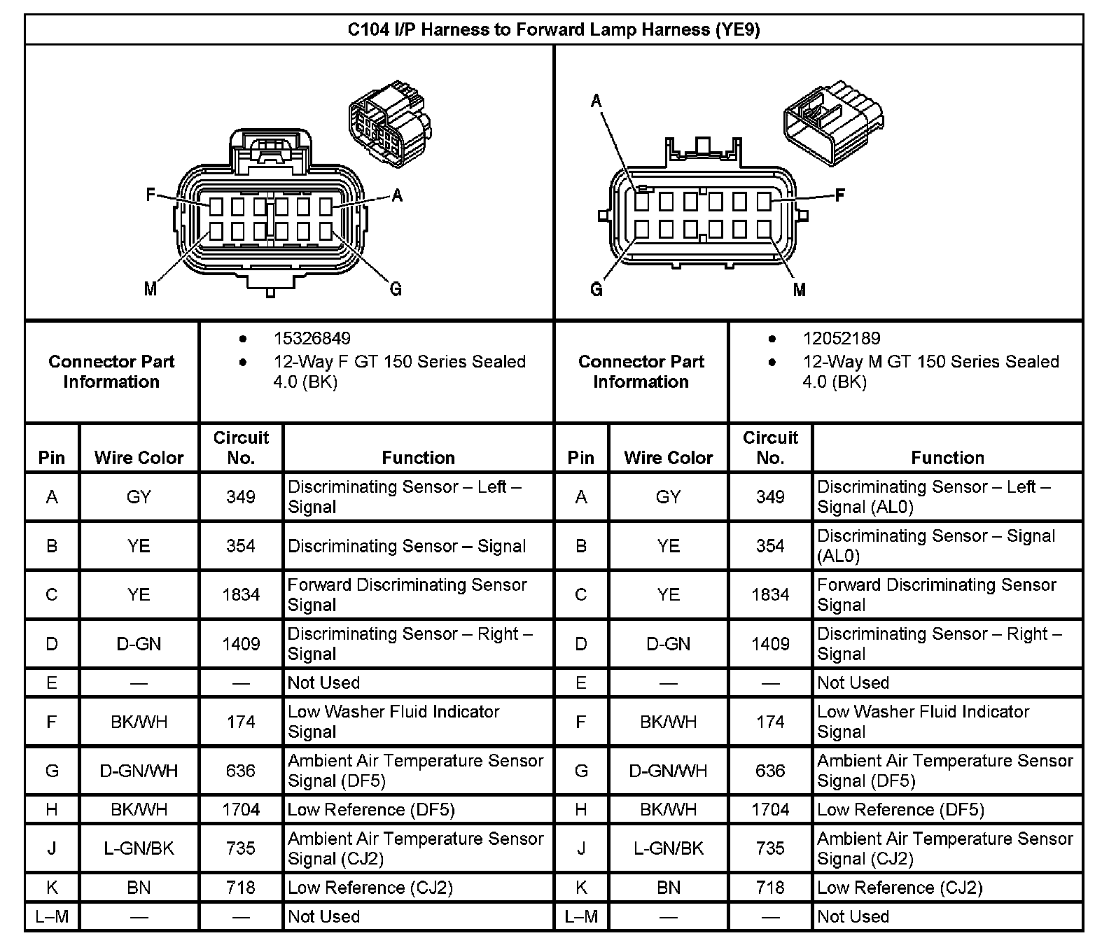 C104 I/P Harness To Forward Lamp Harness (without RPO Code YE9):