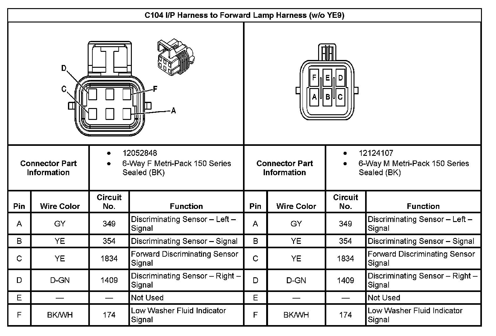 C104 I/P Harness To Forward Lamp Harness (With RPO Code YE9):