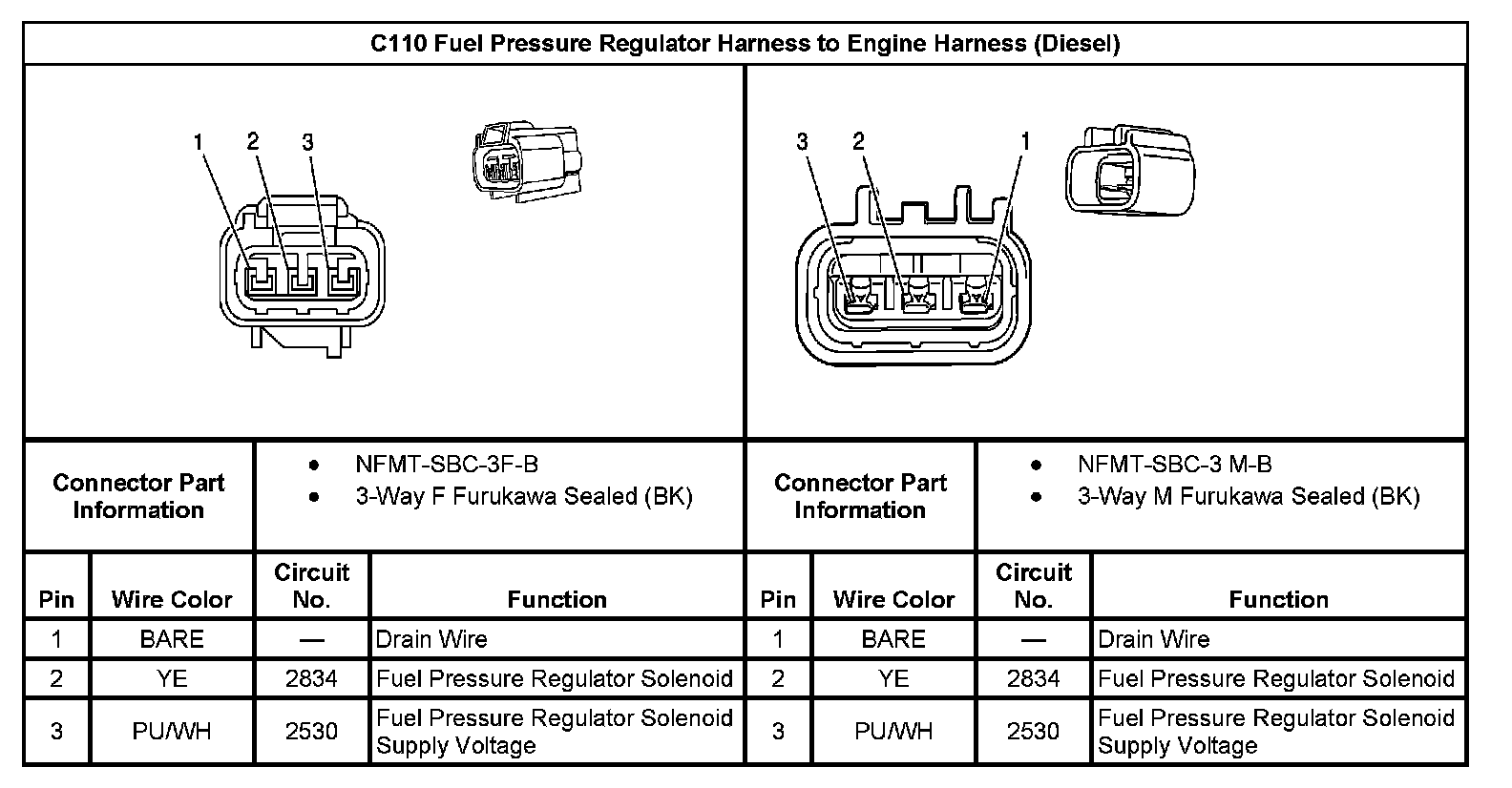 C110 Fuel Pressure Regulator Harness To Engine Harness:
