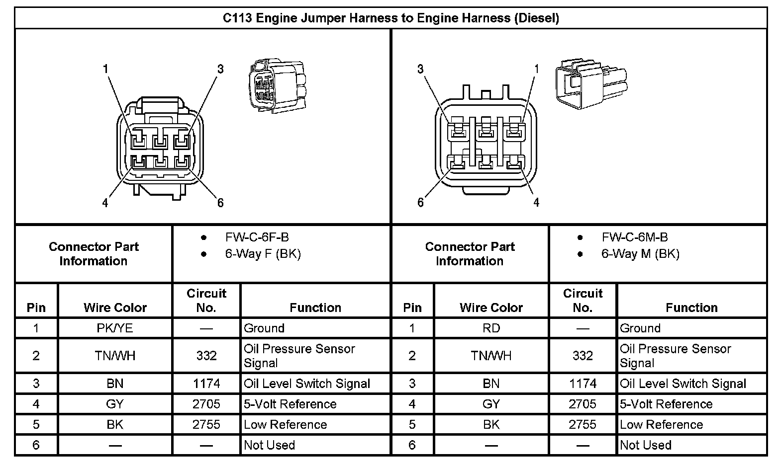 C113 Engine Jumper Harness To Engine Harness: