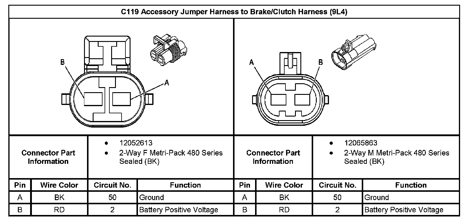 C119 Accessory Jumper Harness To Brake/Clutch Harness (With RPO Code 9L4):