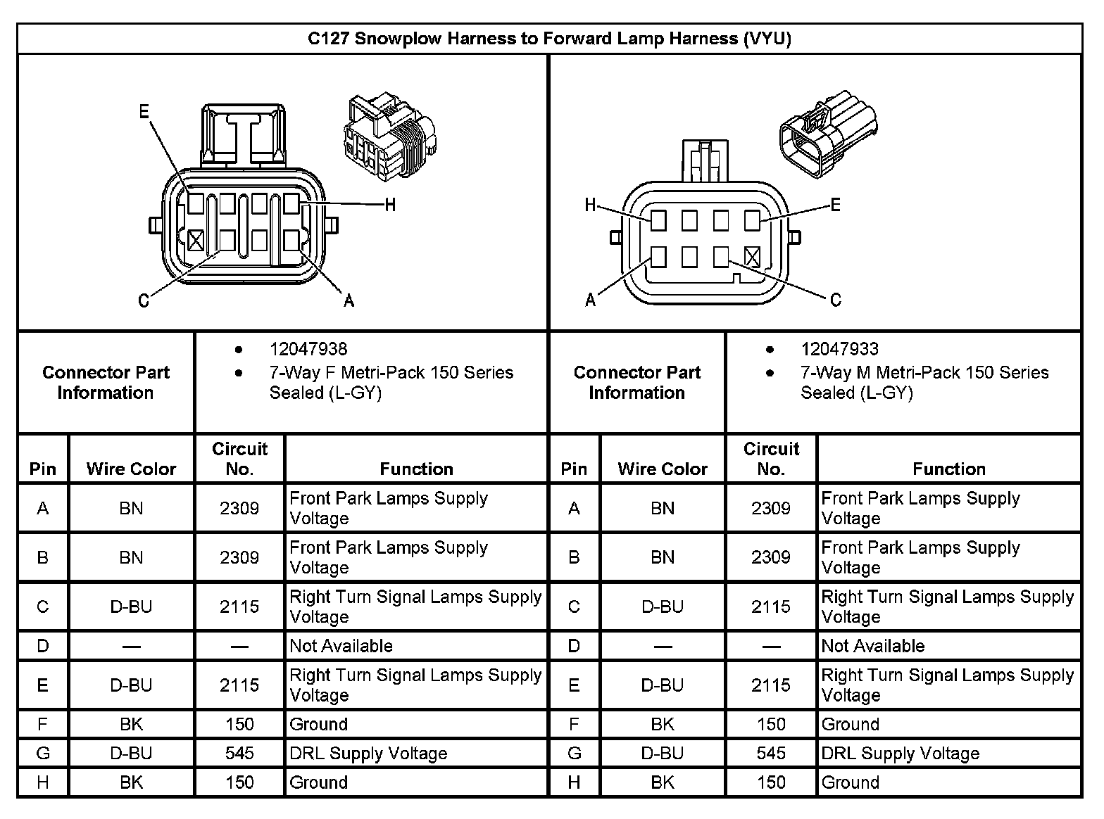 C127 Snowplow Harness To Forward Lamp Harness (With RPO Code VYU):
