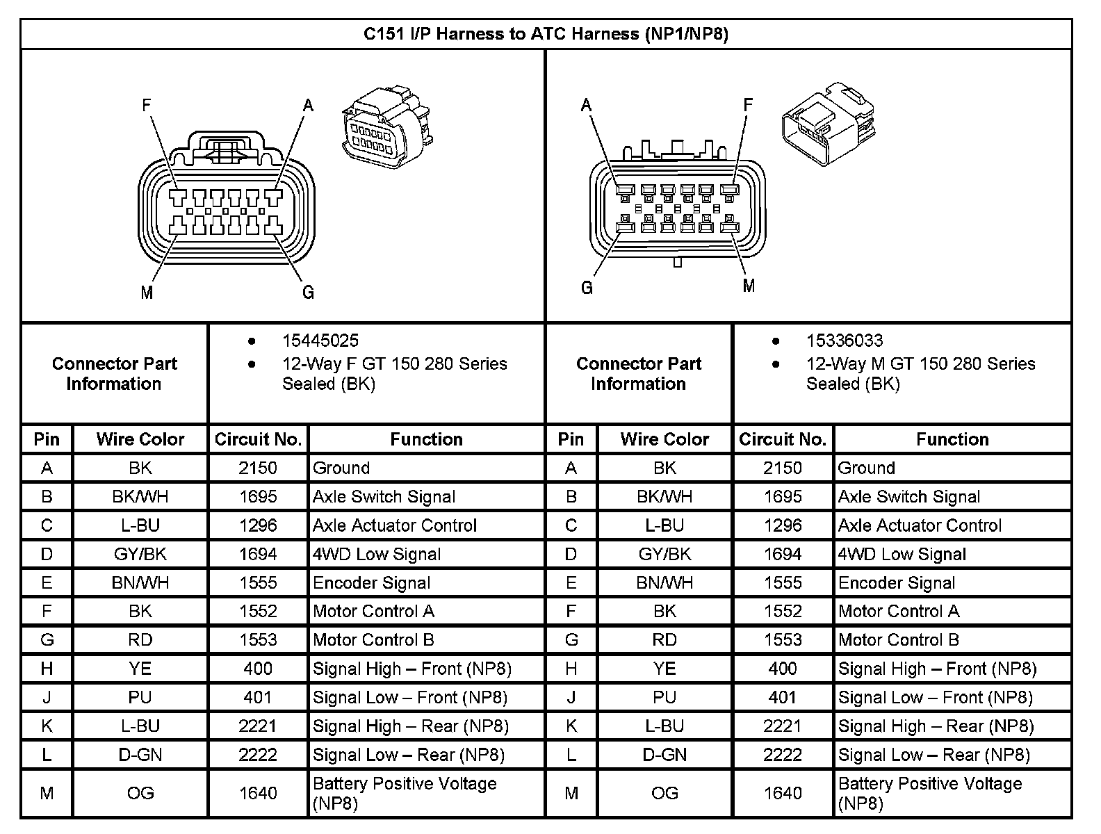 C151 I/P Harness To ATC Harness (With RPO Code NP1/NP8):