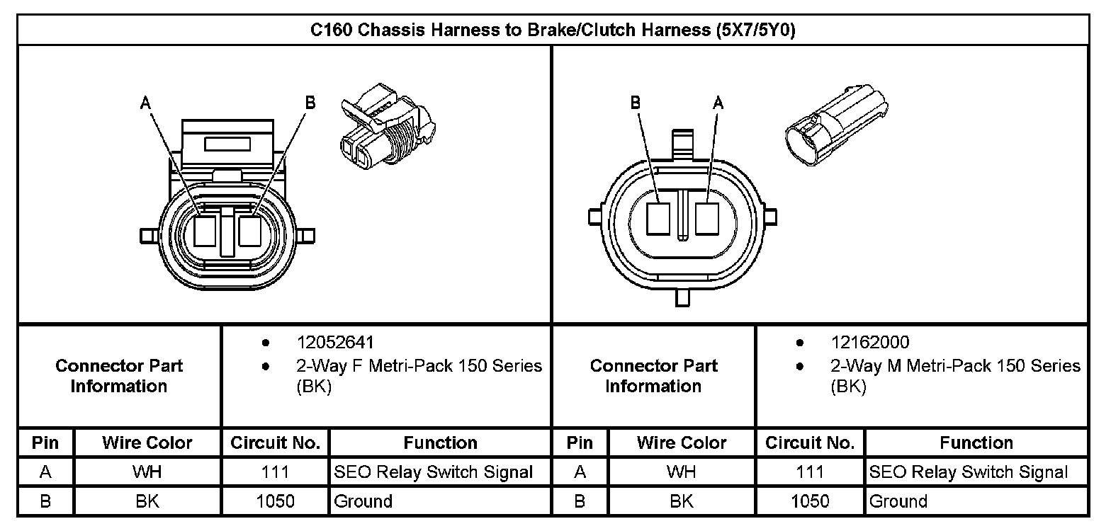 C160 Chassis Harness To Brake/Clutch Harness (With RPO Code 5X7/5Y0):