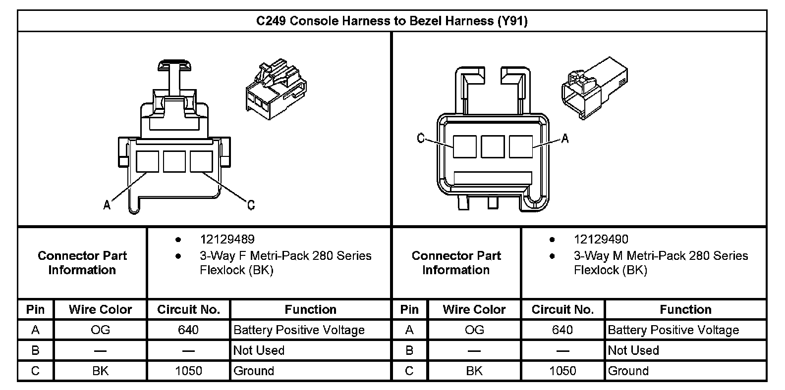 C249 Console Harness To Bezel Harness (With RPO Code Y91):