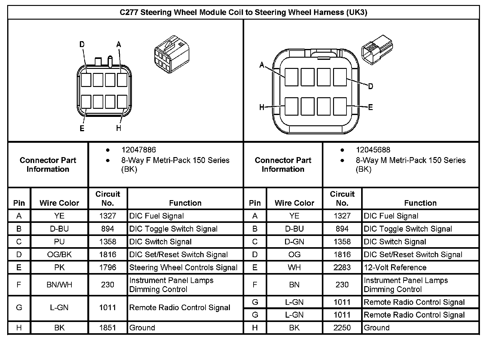 C277 Steering Wheel Module Coil To Steering Wheel Harness (With RPO Code UK3):