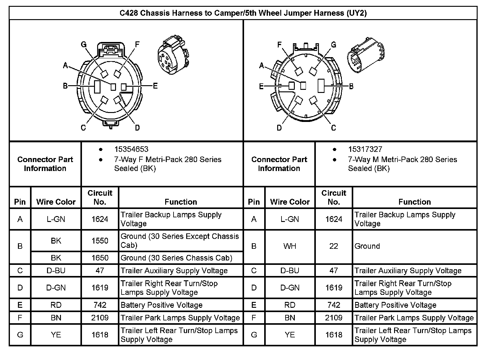 C428 Chassis Harness To Camper/5th Wheel Jumper Harness (With RPO Code UY2):