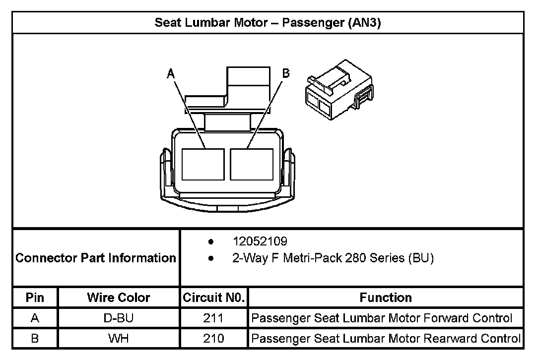 Seat Lumbar Motor - Passenger (With RPO Code AN3):