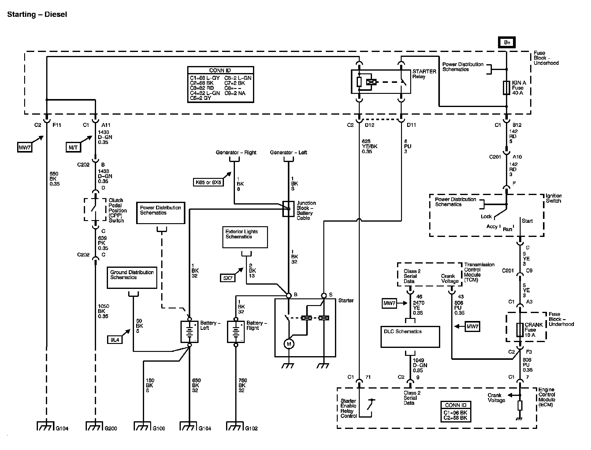 Location: The locations for the Connectors, Grounds, Splices, and grommets shown within these diagrams can be found via their numbers at vehicle locations. Locations