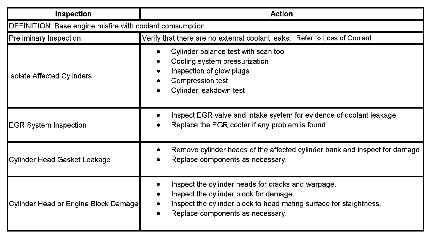 Base Engine Misfire With Coolant Consumption