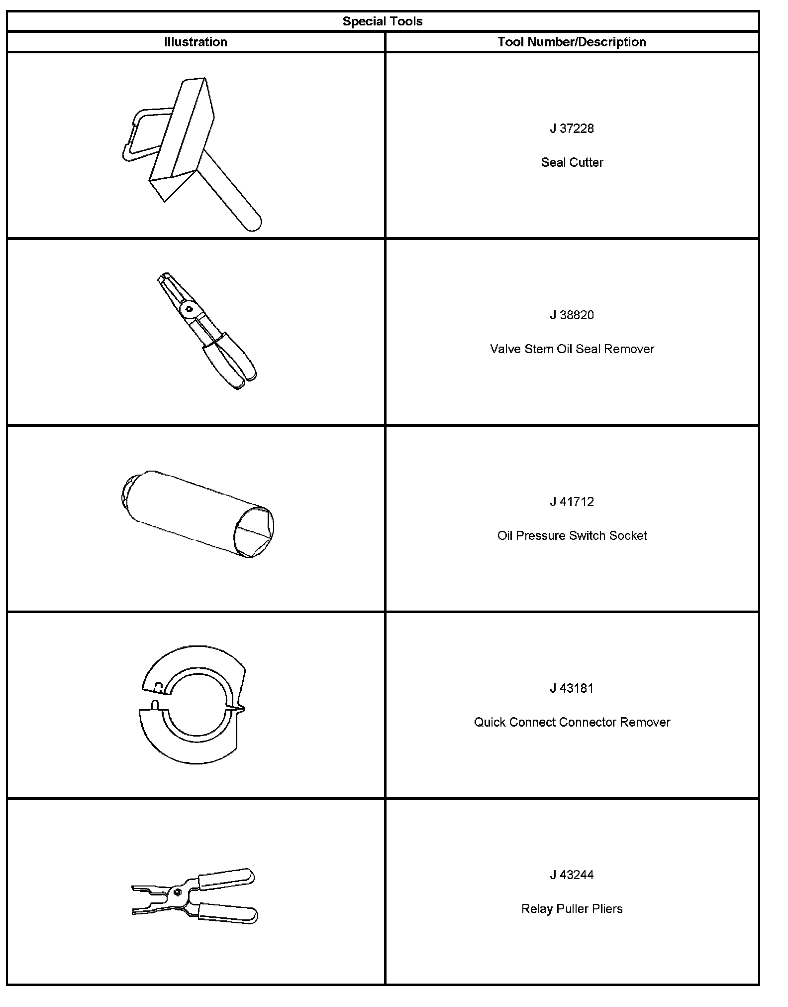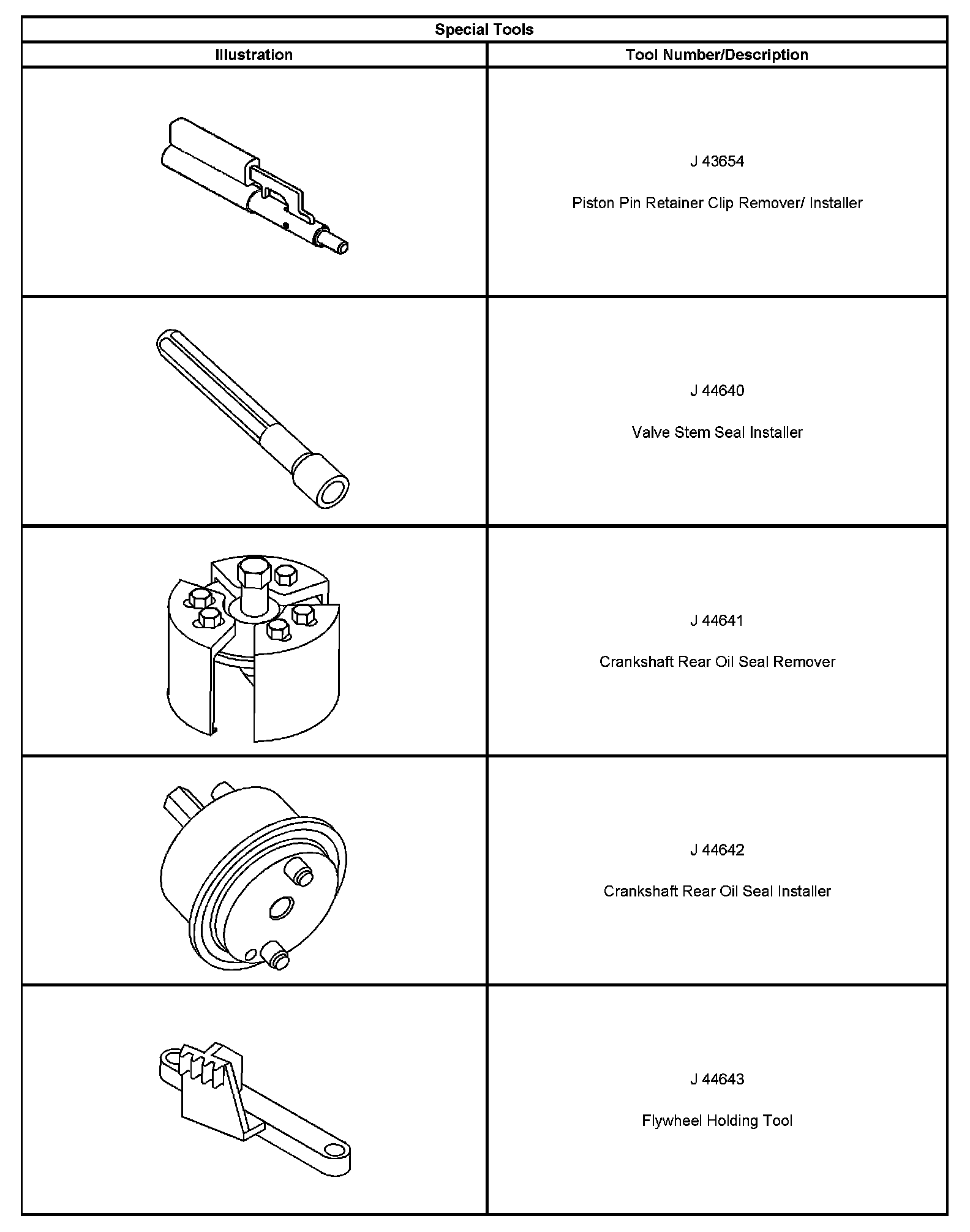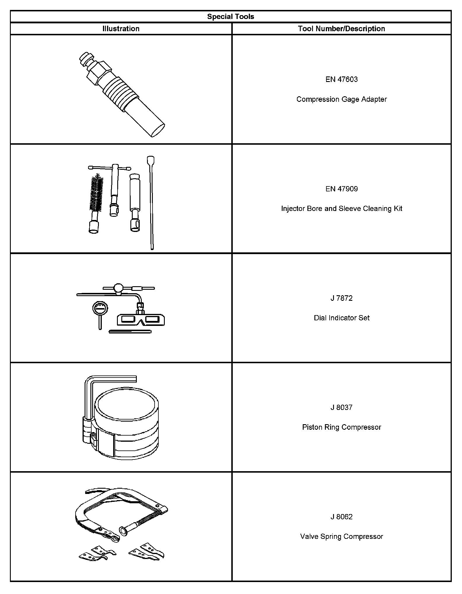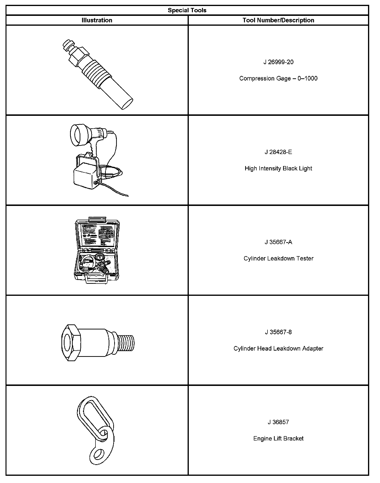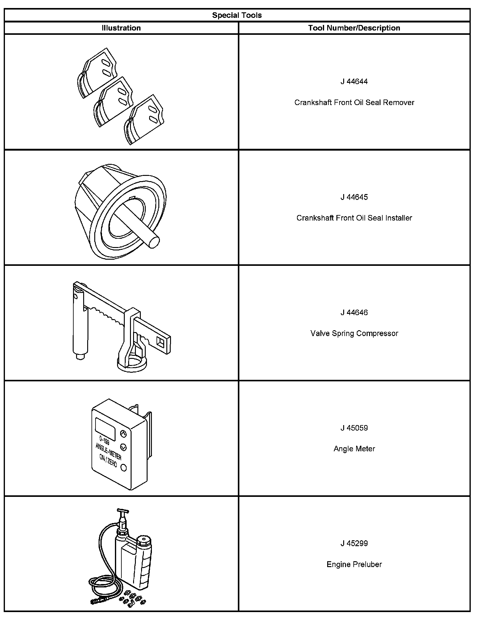 ^ Special tools are listed and illustrated throughout this section with a complete listing at the end of the section. These tools or their equivalents, are specially designed to quickly and safely accomplish the operations for which they are intended. The use of these special tools will also minimize possible damage to engine components. Some precision measuring tools are required for inspection of certain critical components. Torque wrenches and a torque angle meter are necessary for the proper tightening of various fasteners.