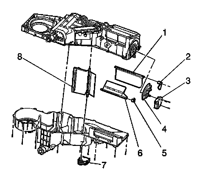 6. Remove the heater door cam assembly (5).