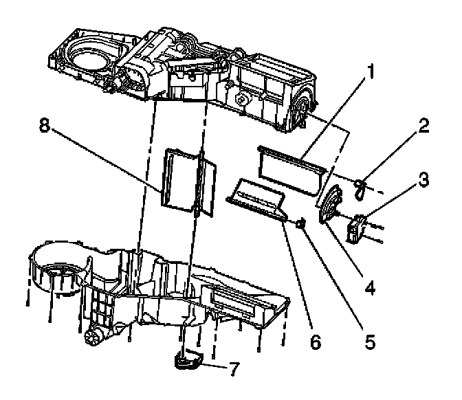 2. Install the heater door cam assembly (5).