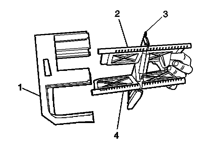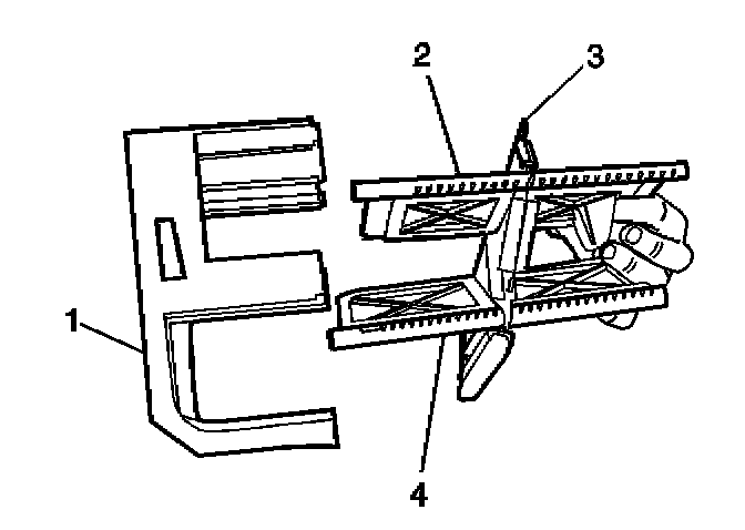 4. Remove the mode actuator (4) from the HVAC module assembly (1).