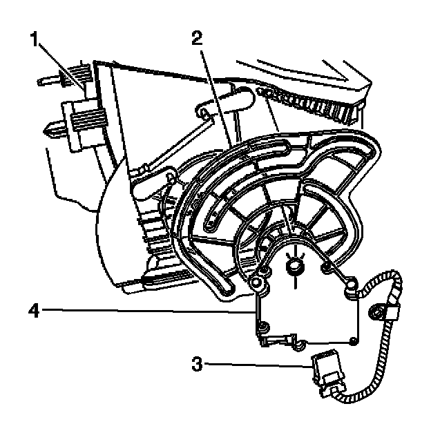 11. Install the mode actuator (4) to the HVAC module assembly (1).