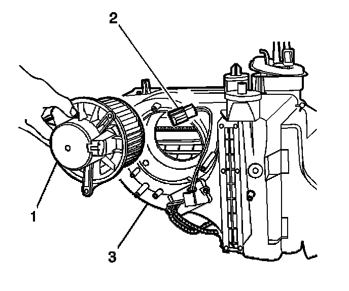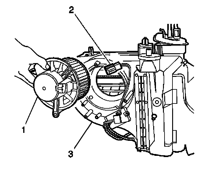 3. Install the blower motor (1) to the HVAC module (3).