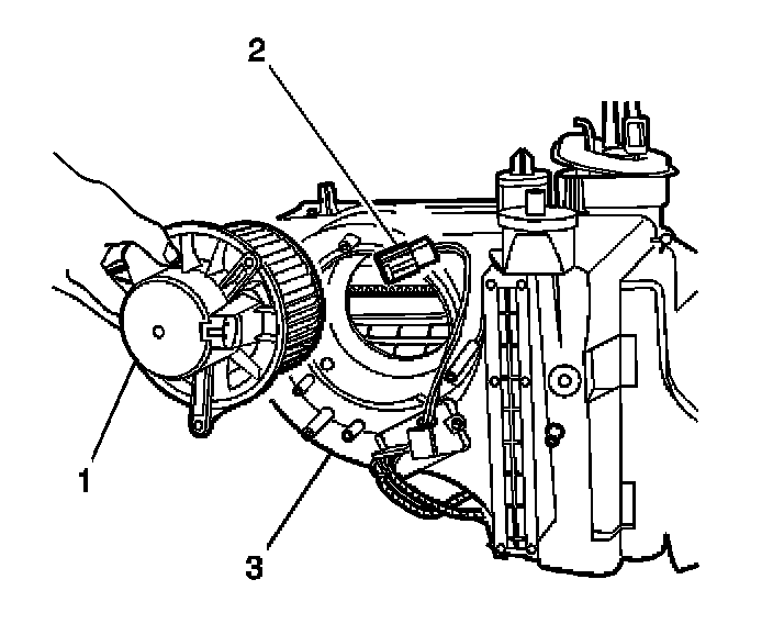 2. Disconnect the electrical connector (2) from the blower motor (1).