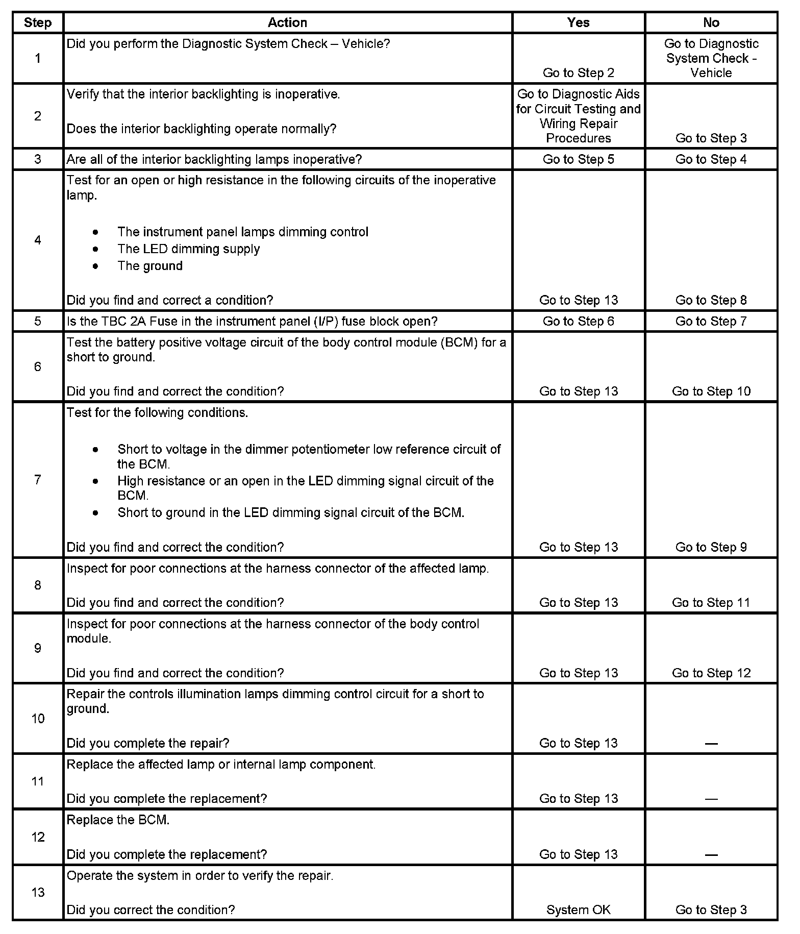 Interior Backlighting Inoperative