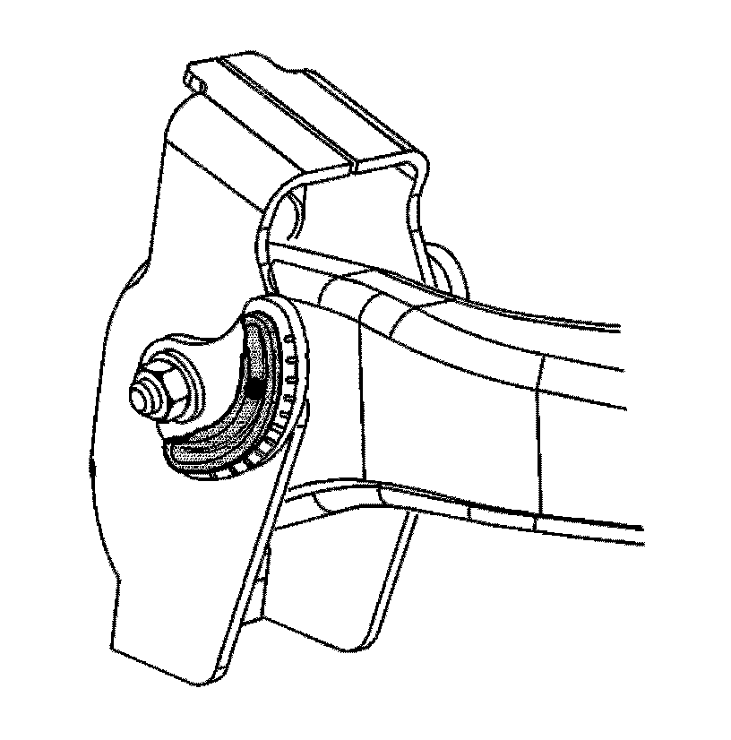 1. The caster and camber adjustments are made by rotating the offset cam bolt and the cam in the slotted frame bracket in order to reposition the control arm.