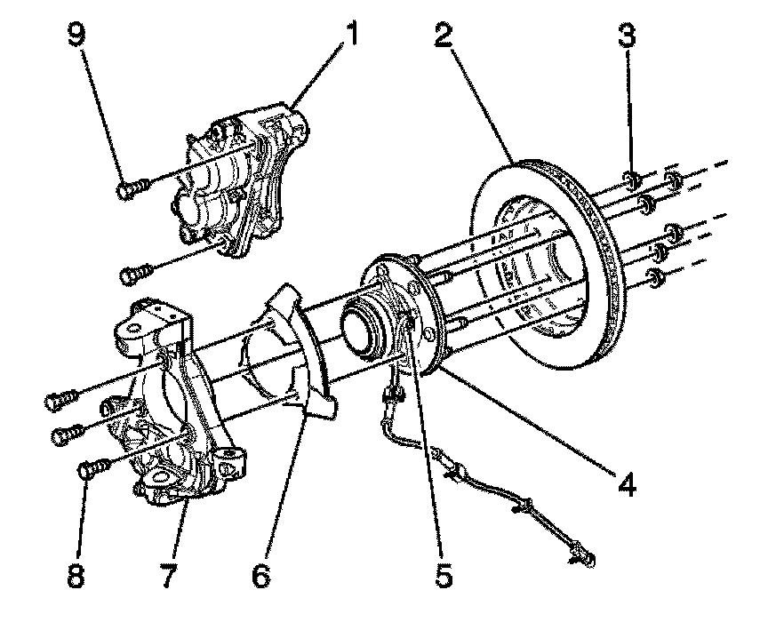 8. Install the wheel speed sensor and brake hose mounting bracket bolt to the steering knuckle.