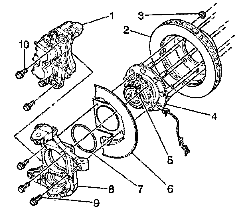 7. Remove the wheel hub and bearing and splash shield from the vehicle.