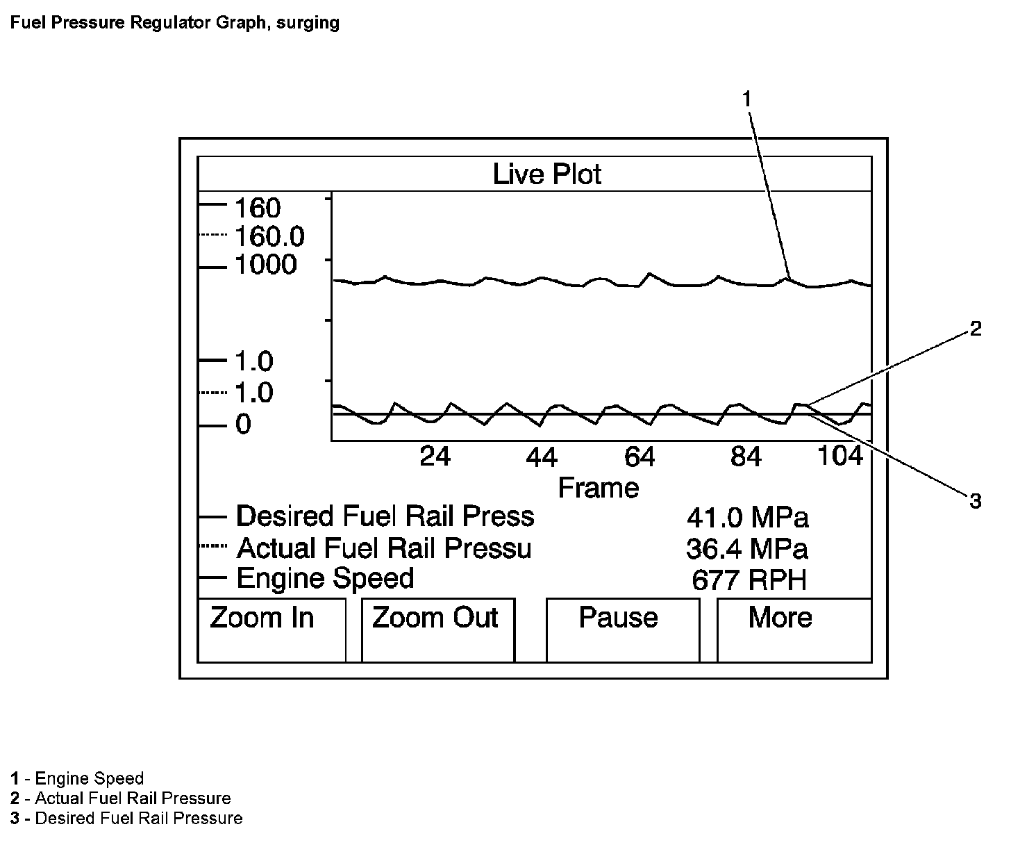 4. If there is a violent fluctuation in the Actual Fuel Rail Pressure , as seen in the surging graph, replace the fuel pressure regulator.