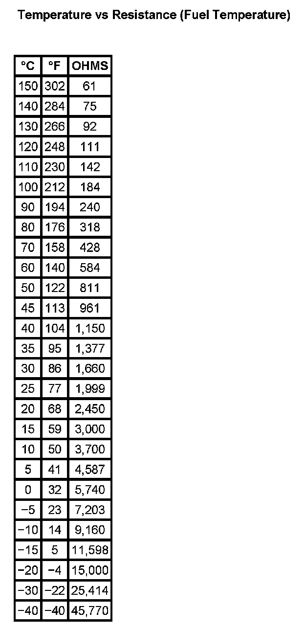 Temperature Vs Resistance (Fuel Temperature):