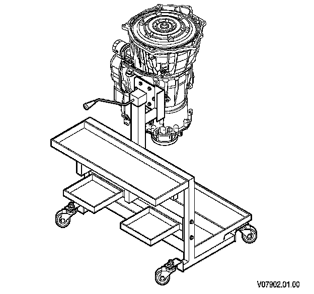 Secure the transmission to J 44723 using either of the PTO mounting pads as the attachment point.