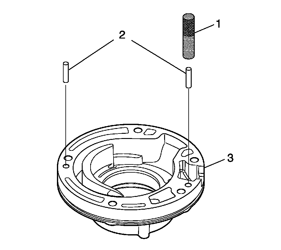 2. Notice: DO NOT mar the oil pump body surface when installing the locating pin(s). Tap gently on the locating pin installer tool. Heavy or continued hammering will damage the oil pump body surface.