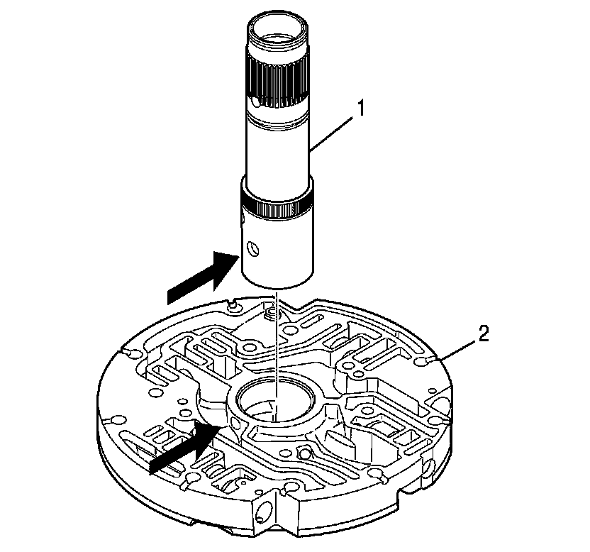 2. Align the stator shaft with the oil pump cover so that the stator shaft is centered over the oil pump cover and the rear of the stator shaft is facing down.