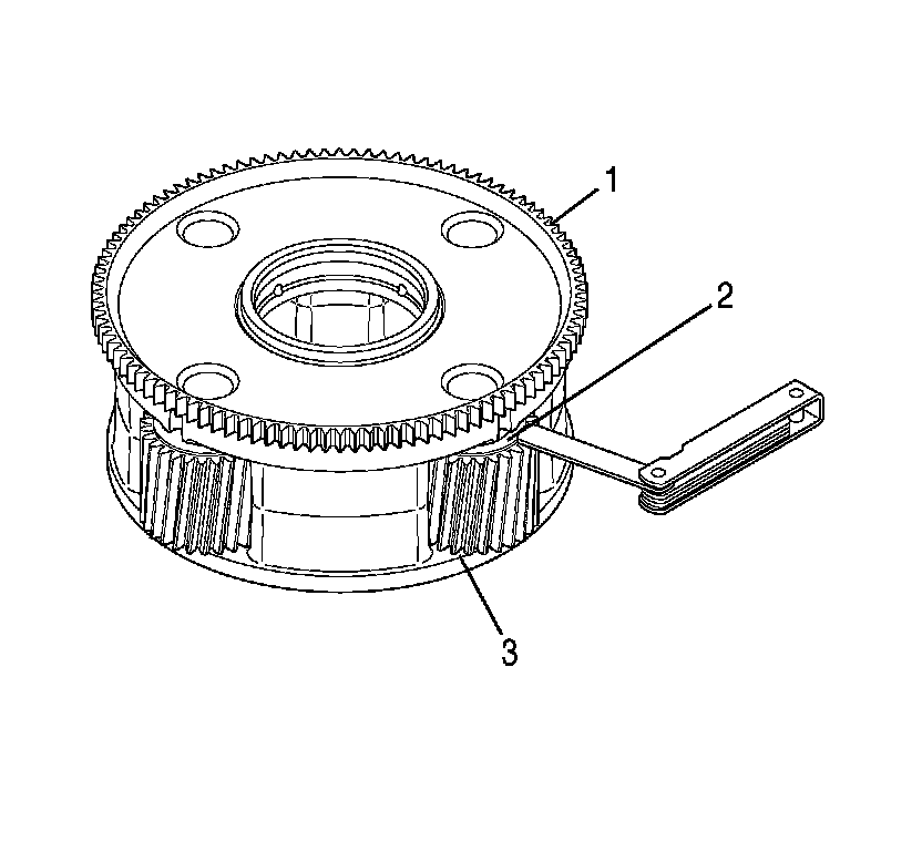 1. Check the end play between the input carrier (1) and the thrust washer (2) at each pinion gear (3).