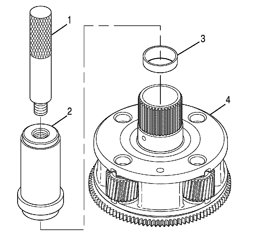 4. Position the intermediate carrier assembly (4) on wooden blocks on the press with the external splines facing down.