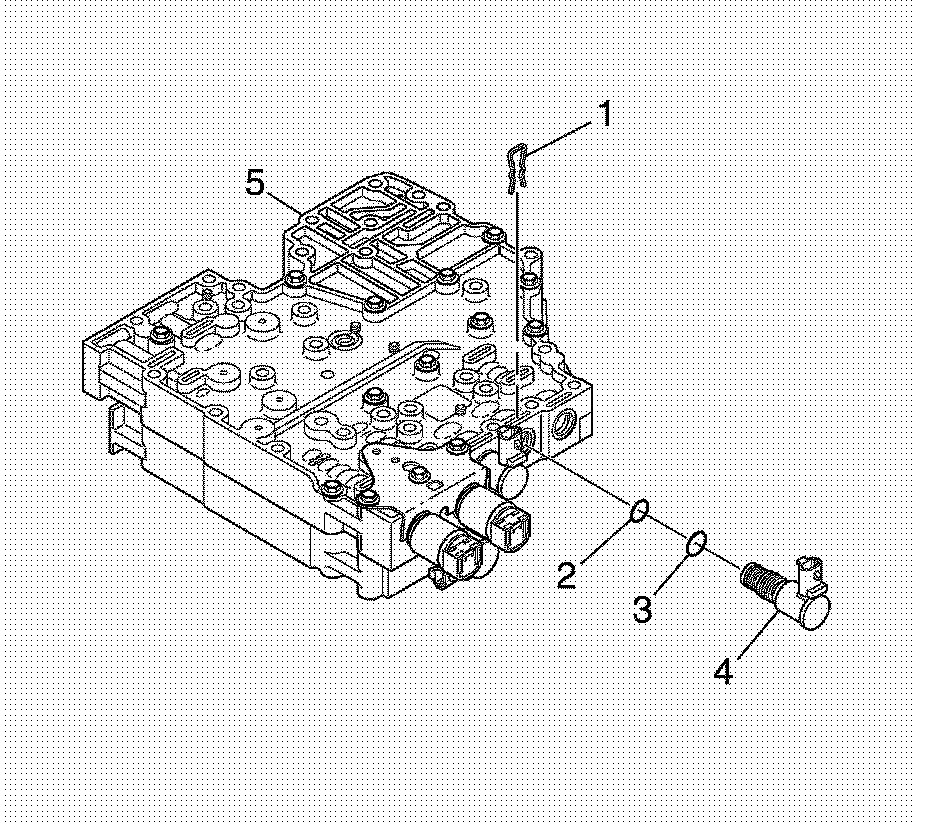 46. Install the solenoid retainer (5) from the bottom into the MAIN MOD solenoid valve body.