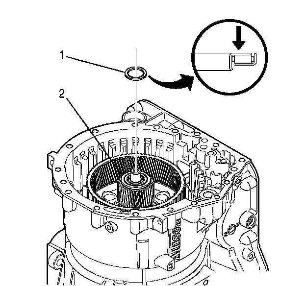 14. Install the thrust bearing assembly (1) into the output sun gear (2).