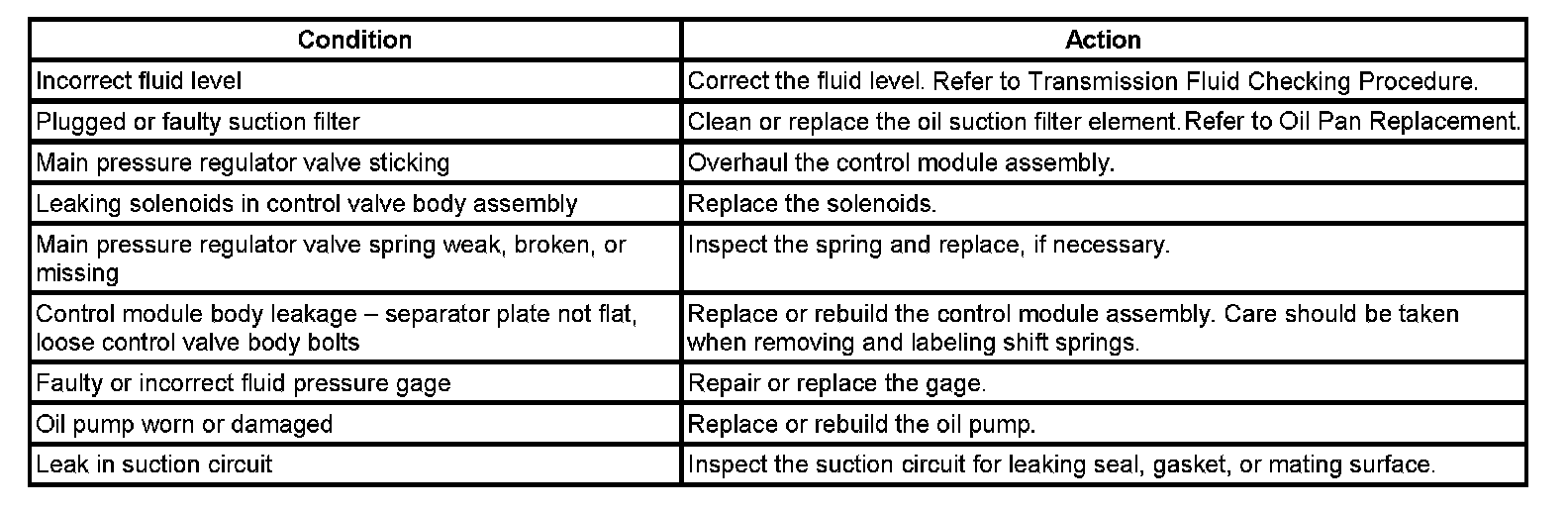 Low Main Line Pressure In All Ranges