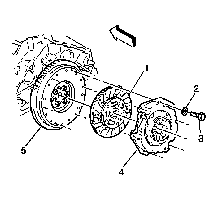 4. Remove the clutch pressure plate (4) and disc (1).