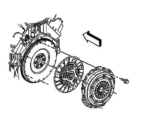 7. If equipped with a 6.6L or 8.1L engine, remove the clutch pressure plate bolts.
