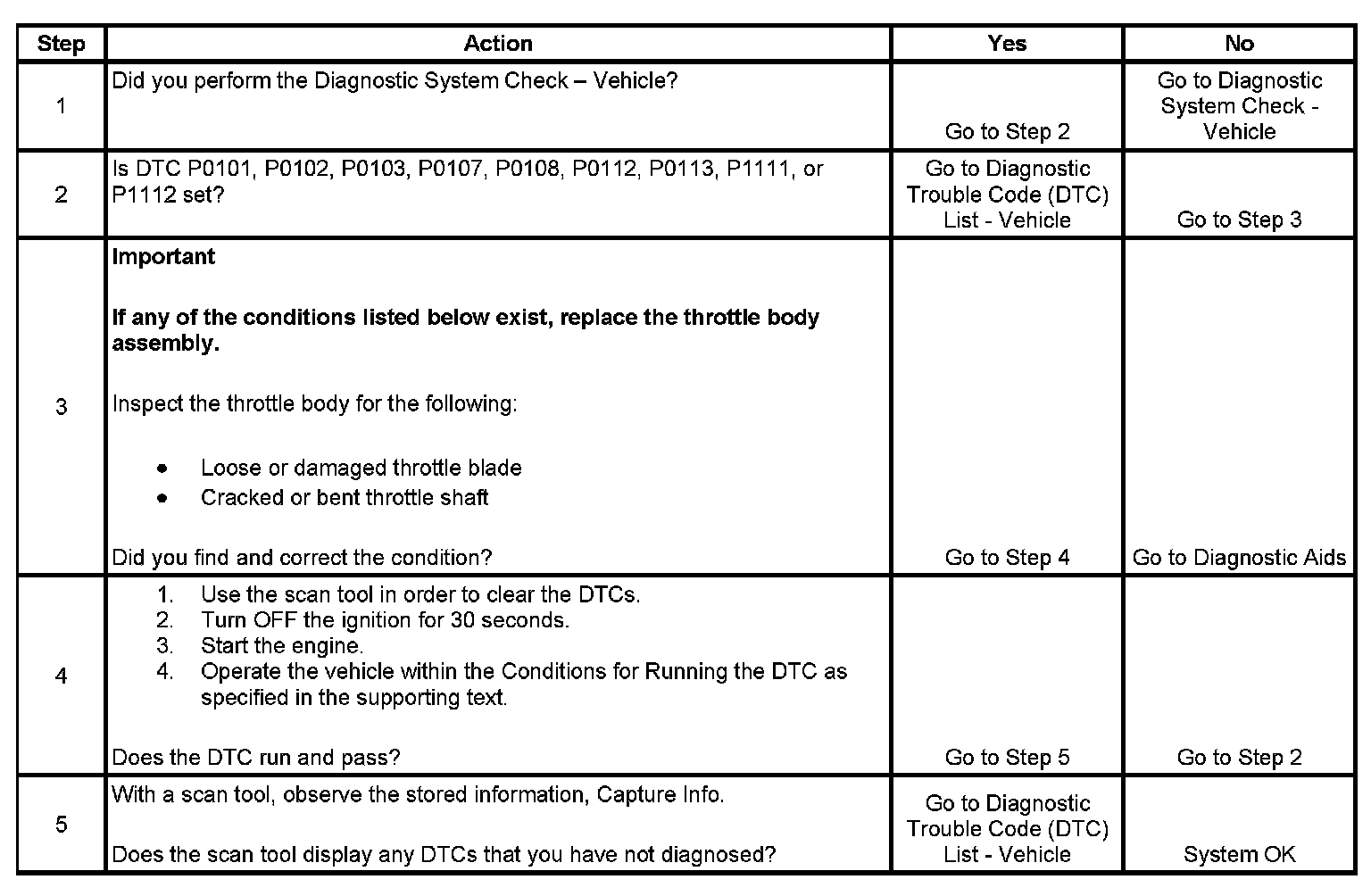 - Physically and visually inspect the throttle body assembly and correct any problems that you observe. Manually move the throttle blade from closed to wide open throttle (WOT). You should not need to use excess force. The throttle blade should move smoothly through the full range and then should independently return to a slightly open position.