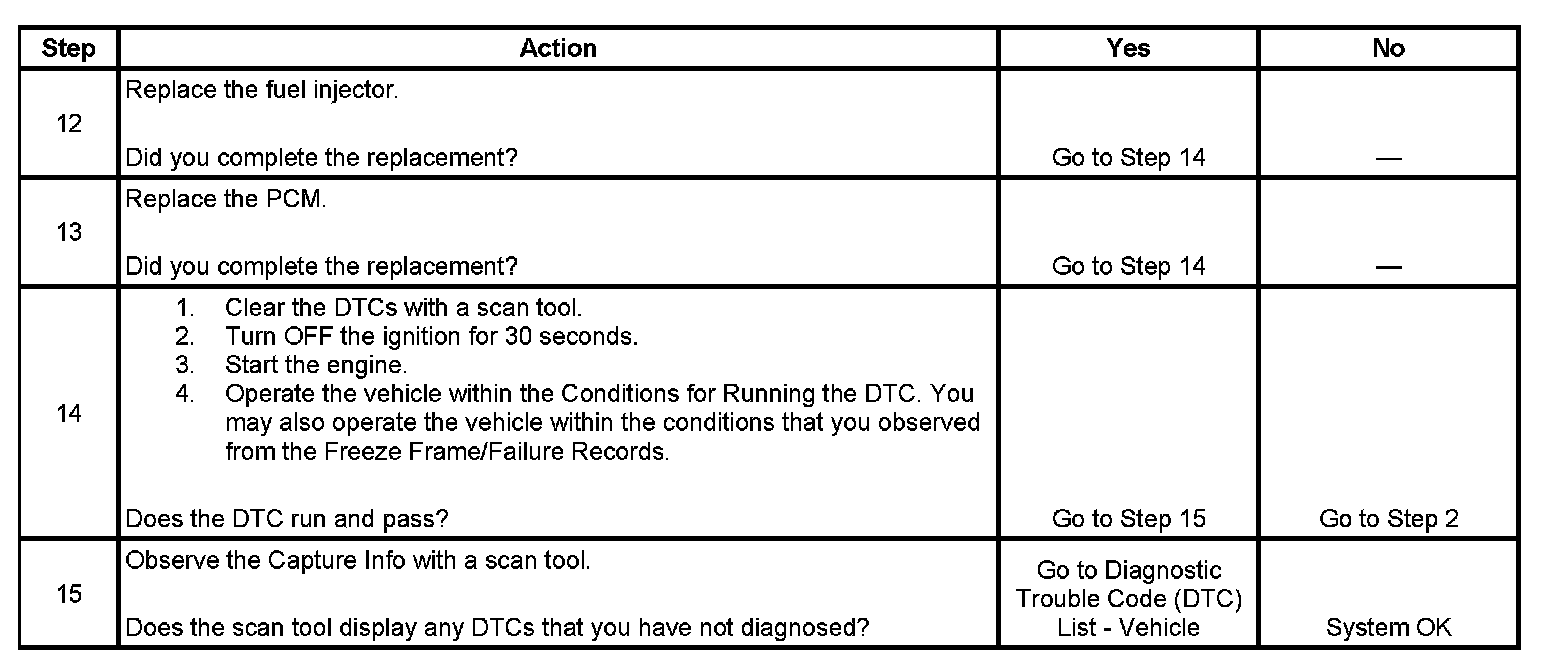 - The PCM detects an incorrect voltage on a fuel injector control circuit.