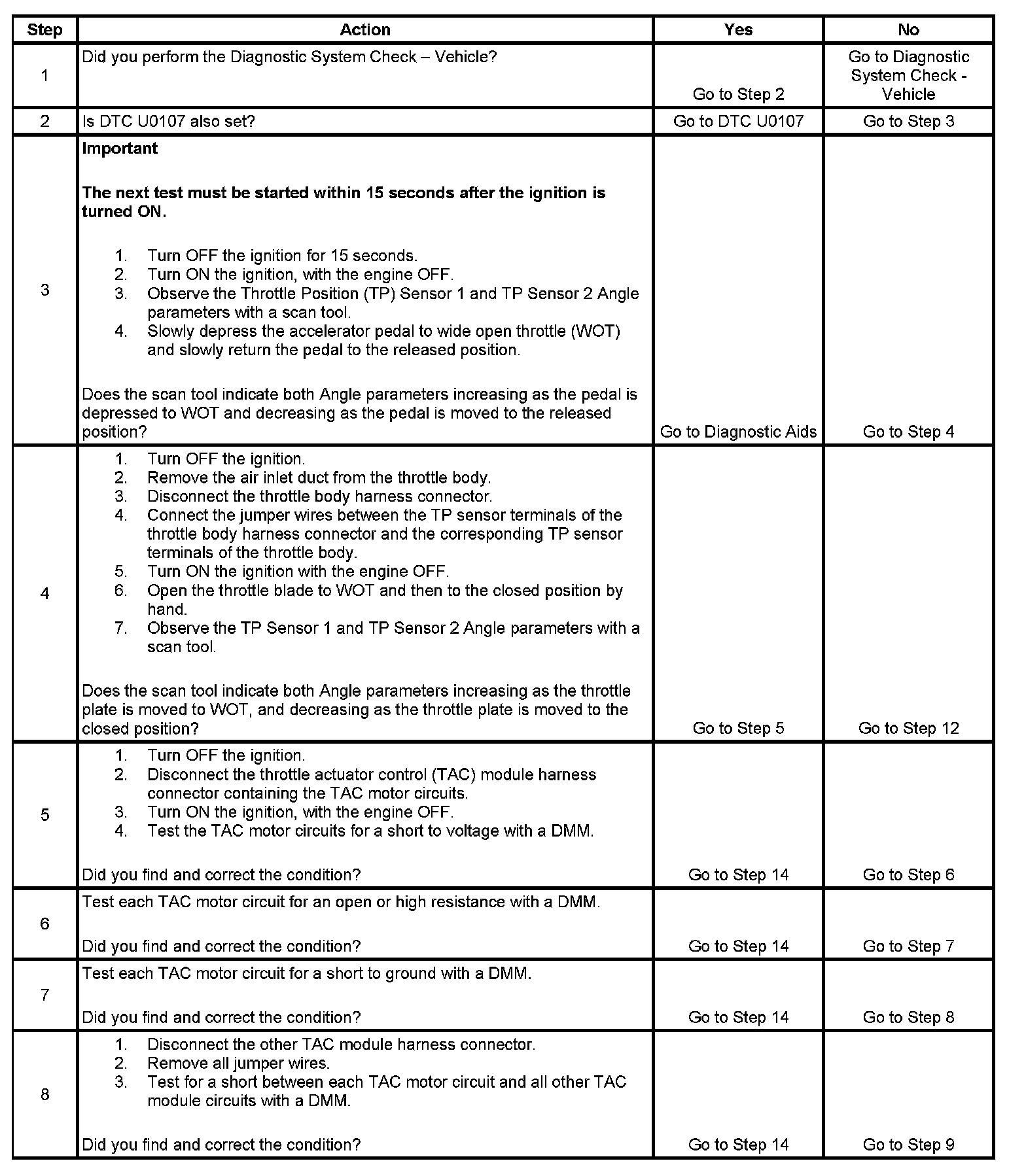 - When the TAC module detects a condition within the TAC System, more than one TAC System related DTC may set. This is due to the many redundant tests run continuously on this system. Locating and repairing an individual condition may correct more than one DTC. Disconnecting components during testing may set additional DTCs. Remember this if you review the stored information in Capture Info.