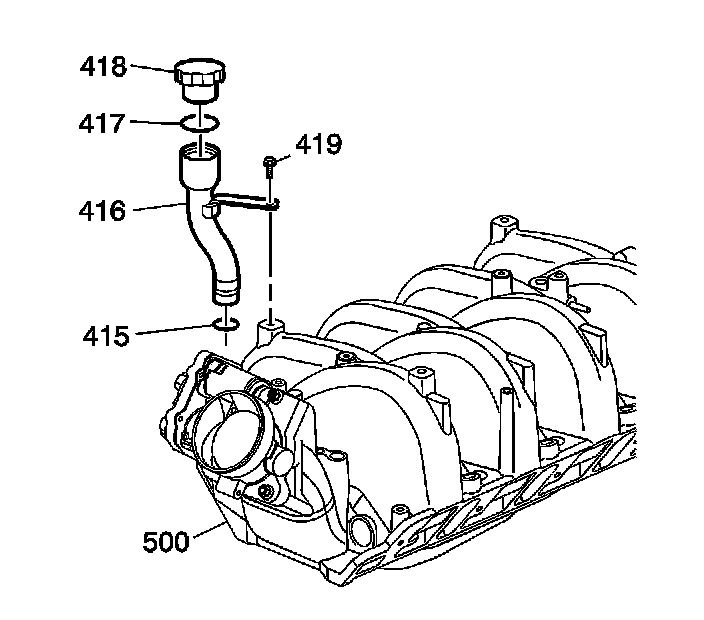 6. Remove the oil fill cap (418).