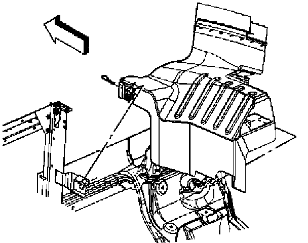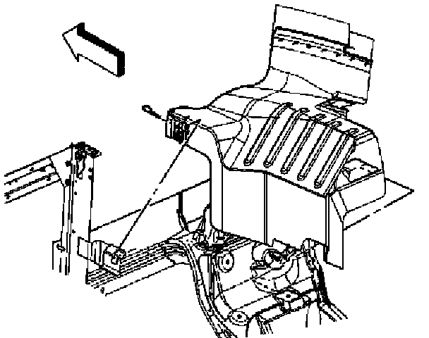 16. Install the clip retaining the front of the panel to the radiator support bracket.